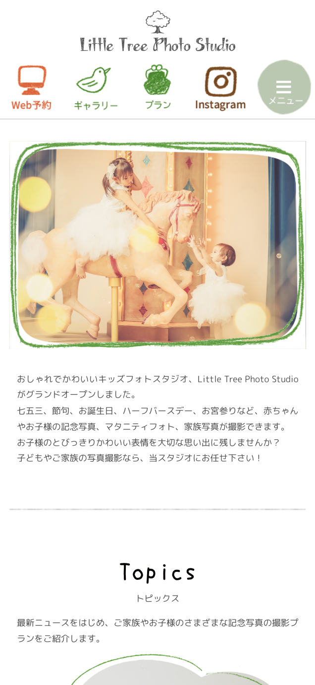 こども写真スタジオ「Little Tree Photo Studio」のモバイルフレンドリー対応を目指し、サイトリニューアルを実施しました。