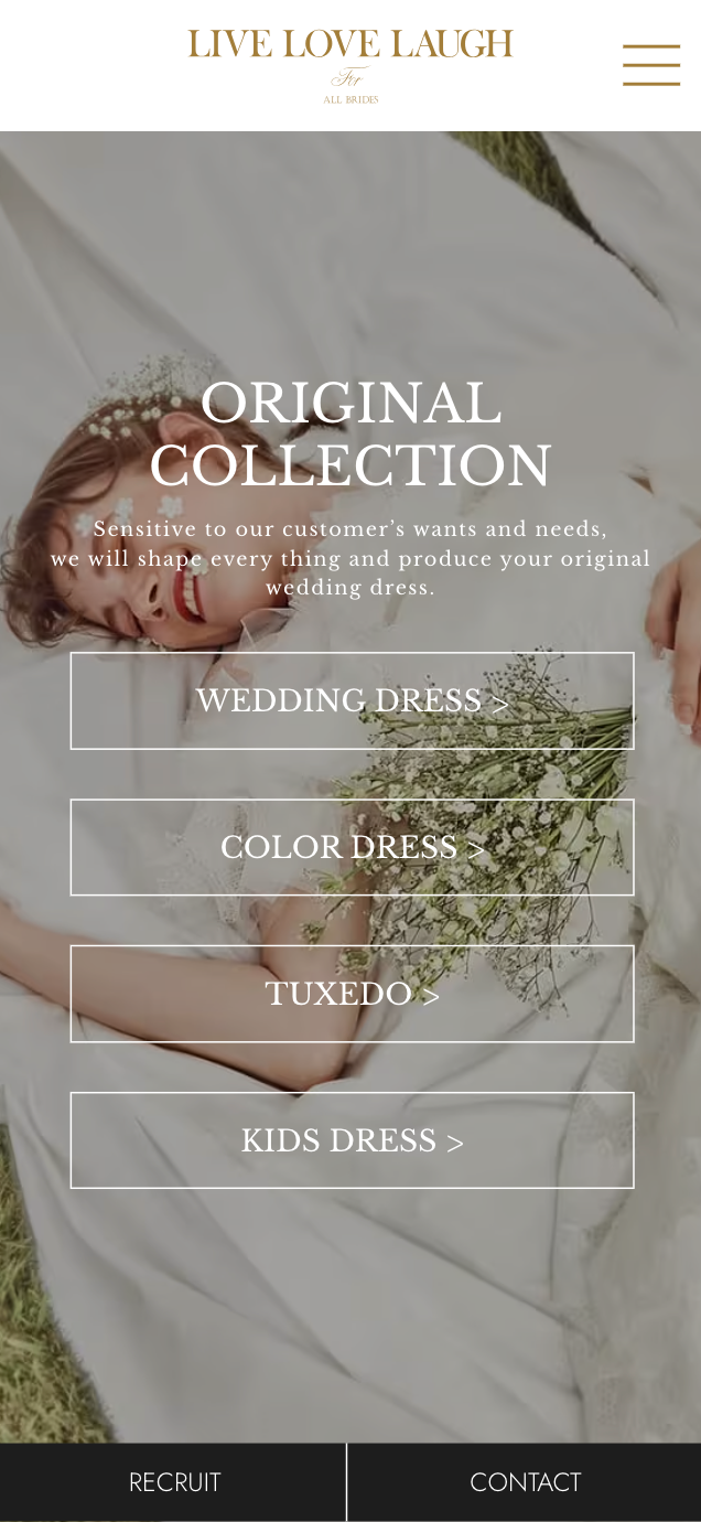 表参道・横浜のドレスサロン「LIVE LOVE LAUGH -リブラブラフ-」の広告写真の再撮影に伴い、公式サイトをフルリニューアルしました。