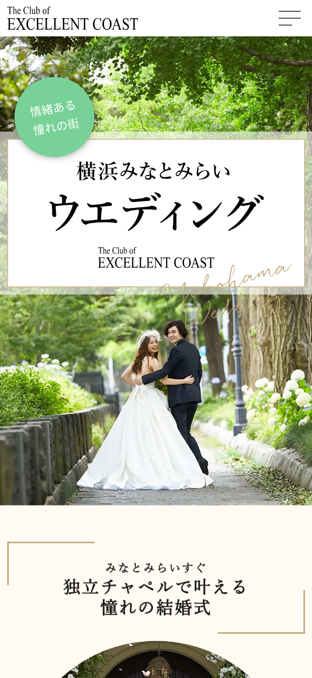 株式会社BPが運営する横浜の結婚式場「ザ クラブ オブ エクセレントコースト」のランディングページのデザインとコーディングを担当しました。